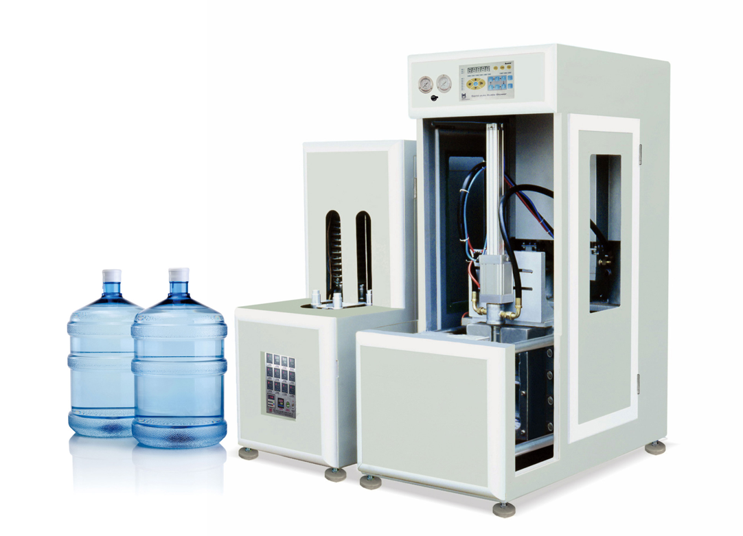5 Gllon bottle blow moulding machine is ideal for bottling plants looking to manufacture PET bottles on site and reducing cost and saving storage space. It is designed for 3 gallon, 5 gallon and other wide mouth bottles, speed of 75 bottles per hour can be achieved. Machine is manufactured with heavy duty tubular frame, infrared reheat units to achieve uniform heating throughout the wall of preform. tubular frame, infrared reheat units to achieve uniform heating throughout the wall of preform, special designed preform heating system to ensure the optimal heating effect for thick preform, special designed fan-cooling system in the heating channels to keep the oven with constant temperature and ensure the preform can be heated completely, microprocessor control for easing setting, easy to operate without special training, low cost maintaining .